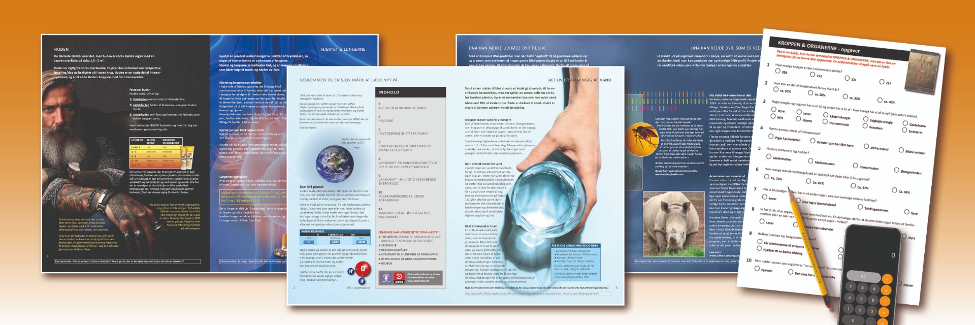 Opslagene som er vist i toppen af siden, er fra temahæfterne: "KROPPEN & ORGANER", "VAND" og "BIODIVERSITET". Til alle temahæfter hører opgaveark med ca. 20 multiple-choice spørgsmål. Opgaverne kan downloades og printes gratis. Disse opgaver er en vigtig del af indlæringen, men er ikke tænkt som en standspunktsvurdering af eleverne.